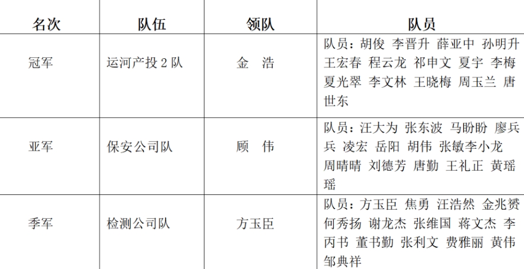 为全方位激发职工参与热情,本次运动会包含羽毛球、篮球等竞技类比赛和激情毛毛虫、拔河等趣味性比赛,共设有5个比赛项目,集竞技性、趣味性及协作性于一体,主题突出、寓意深远。经过激烈的角逐,各比赛项目分别产生冠、亚、季军,团体总分冠、亚、季军各一名,集团领导为获奖运动员及集体颁发奖牌和奖杯。