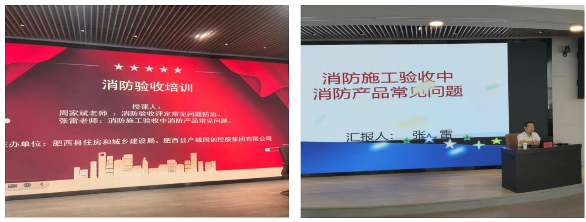 培训特别邀请了安徽省住建厅首批消防专家库成员、合肥市应急管理局消防专家周家斌和张雷两位权威人士授课指导。培训内容紧扣“建设工程消防产品常见问题及规范处理”,两位专家分别围绕消防产品选型配置、现场常见不合规问题出发,详细地剖析了现场施工中常见的不合规现象,并结合系列典型整改案例,生动展示了验收流程优化的具体路径和成效。培训内容既具有理论深度、又贴近工作实际,具有较强的指导性和针对性。
